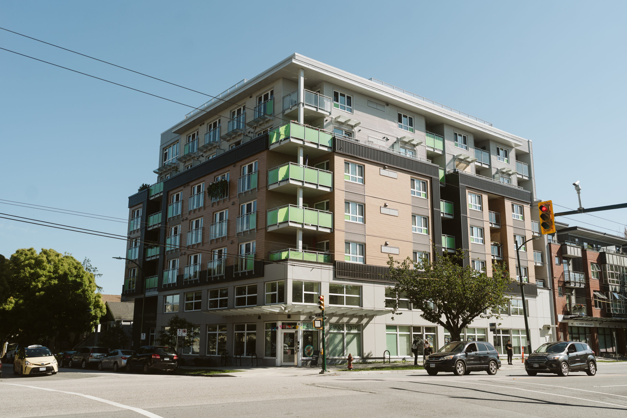 North Arm fosters the diverse strengths, interests and expertise of mature adults, enriching neighbours and the wider community. Pet-friendly homes include in-suite laundry. North Arm includes an indoor amenity space with a common kitchen, two outdoor spaces with urban gardening opportunities, and a public Modo car share conveniently located on site.